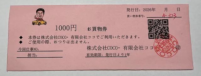 ★車検のお客様には、もれなく2000円分のお買物券プレゼントしております。